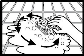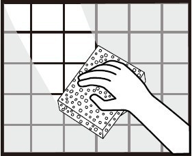 ④在第一次清洗完毕后再用干净沾湿拧干后的海绵沿着面材的对角线方向进行擦拭,进行第二次清洁,直到面材干净,缝表面光滑。海绵的每侧表面只能使用一次。